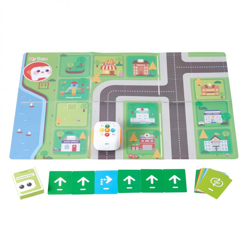 With the Tale-Bot, children can create their own stories and bring them to life through programming. They can use the colorful programming tiles to create a series of instructions that the Tale-Bot will follow. With simple commands such as move forward, turn and pause, children can control the robot's movements to shape their stories.