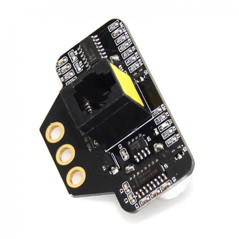 The ultrasonic sensor can be used to detect the distance between an obstacle and it. The left probe of the ultrasonic sensor transmits ultrasonic waves and the right one receives ultrasonic waves.